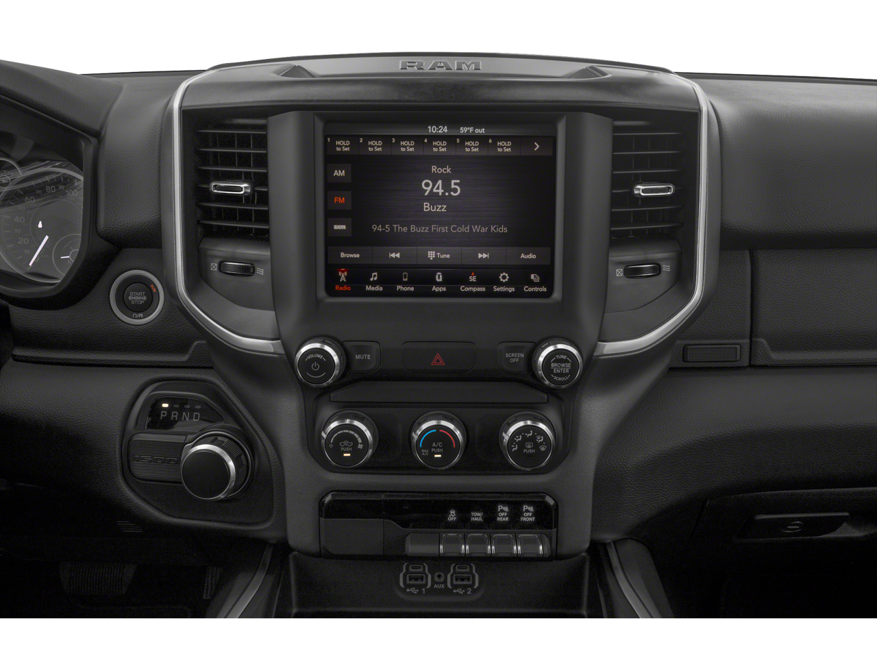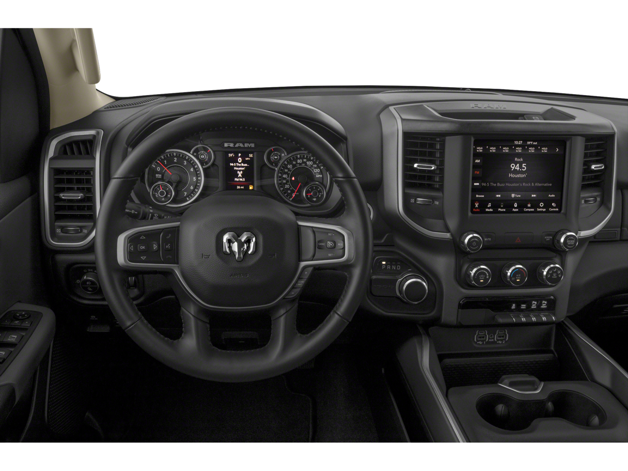 115V Auxiliary Power Outlet, 115V Auxiliary Rear Power Outlet, 2 USB Full Function/Charge Only Media Hub, 400W Inverter, 8.4 Touchscreen Display, Air Conditioning ATC w/Dual Zone Control, Auto-Dimming Rear-View Mirror, Big Horn IP Badge, Big Horn Level 2 Equipment Group, Class IV Receiver Hitch, Cluster 7.0 TFT Color Display, Dampened Tailgate, Foam Bottle Insert (Door Trim Panel), Glove Box Lamp, Hands Free Calling, Heated Front Seats, Heated Seats, Heated Steering Wheel, Integrated Center Stack Radio, Keyless Entry, MP3- USB / I-Pod Ready, ParkSense Front/Rear Park Assist w/Stop, Power 4-Way Driver Lumbar Adjust, Power 8-Way Driver Seat, Power Adjustable Pedals, Power Heated Fold Away Mirrors, Power Locks, Power Windows, Radio: Uconnect 4 w/8.4 Display, Rear Camera, Rear Dome w/On/Off Switch Lamp, Rear Power Sliding Window, Rear Window Defroster, Remote Start, Security Alarm, Single Disc Remote CD Player, SiriusXM Satellite Radio, Sun Visors w/Illuminated Vanity Mirrors, Sync Blue-tooth Hands Free Calling, Universal Garage Door Opener.