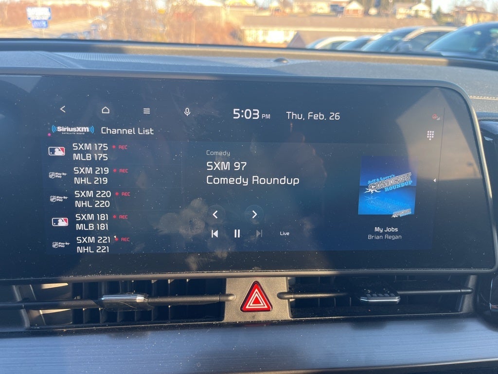 - Radio: AM/FM/HD Audio System -inc: 12.3" touchscreen w/navigation, 6 speakers, Apple Carplay and Android Auto, Kia Connect, voice recognition, WiFi, map OTA, satellite radio, steering wheel mounted audio controls and Bluetooth® phone and streaming audio